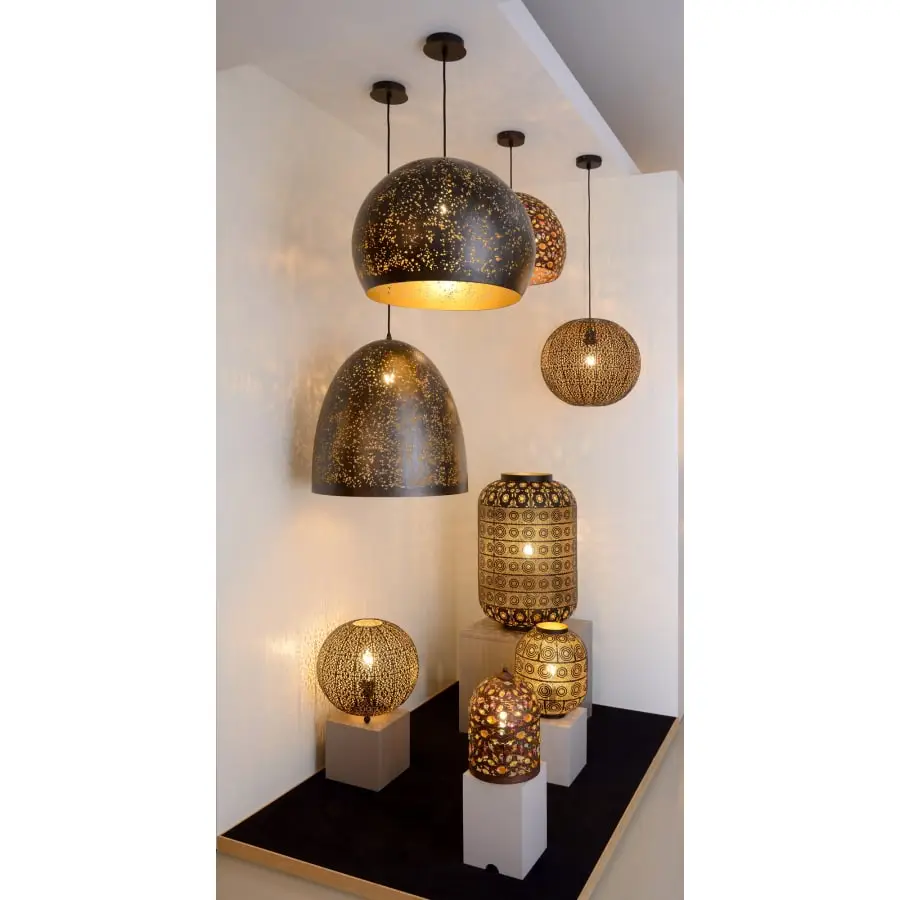 En bordslampa som utstrålar en orientalisk atmosfär från topp till tå. Tahar garanterar hemmets atmosfär och mysighet. Dess fina finish och metallnyans skapar en rustik och andlig miljö. En orientalisk bordslampa som kännetecknas av mångsidighet. Ge Tahari en plats i ditt nöjescenter i vardagsrummet eller använd den som en stämningslampa i sovrummet. Oavsett vilket är det ett trevligt komplement till din moderna interiör. Tahar är en snygg atmosfär skapare i ditt hus.