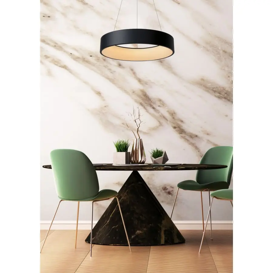 TALOWE LED är en modern, vacker pendel och passar perfekt till modern inredning. Den integrerade LED-ljuskällan ger ett vackert ljus genom akrylkupolen. Lampans LED-cirkel, en antydan av lugnt, mjukt ljus, skapar en utmärkt interiöratmosfär.