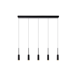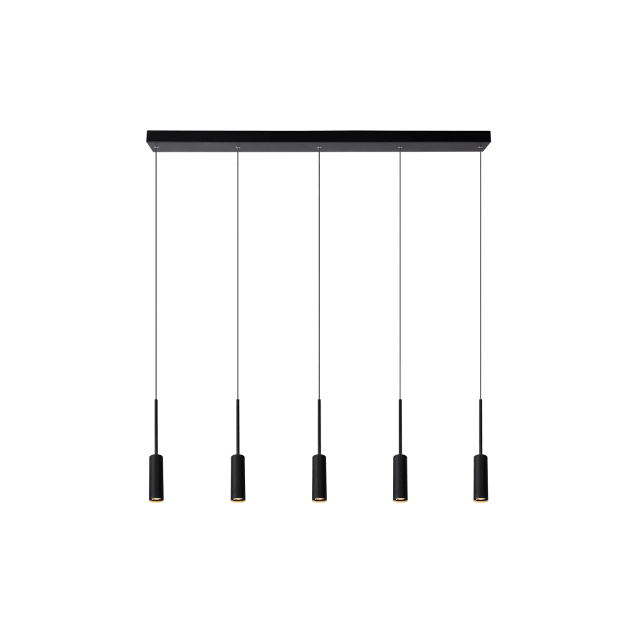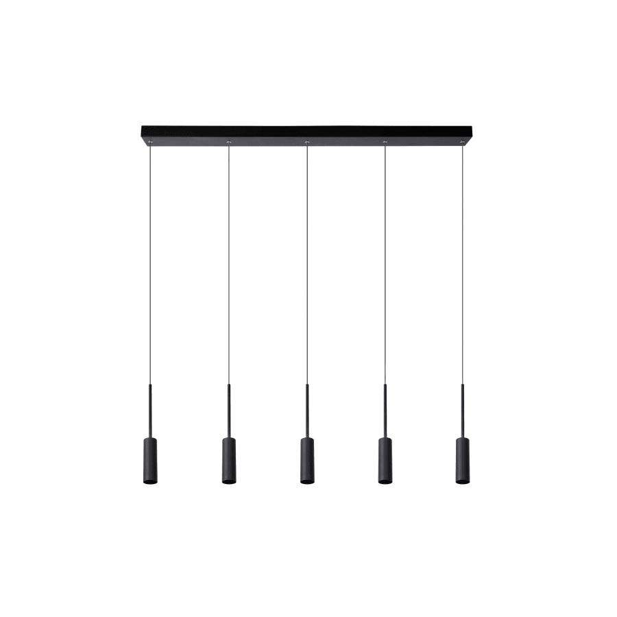 Varje modern matsal bör ha en modern taklampa. Välkommen Tubule. Fem ljuspunkter är fästa på den släta takplattan i en rak linje. Tydlig och stilren design. Ljuskällorna är integrerade i cylindriska aluminiumskärmar. Mysigt varmvitt ljus flödar uppifrån och under.