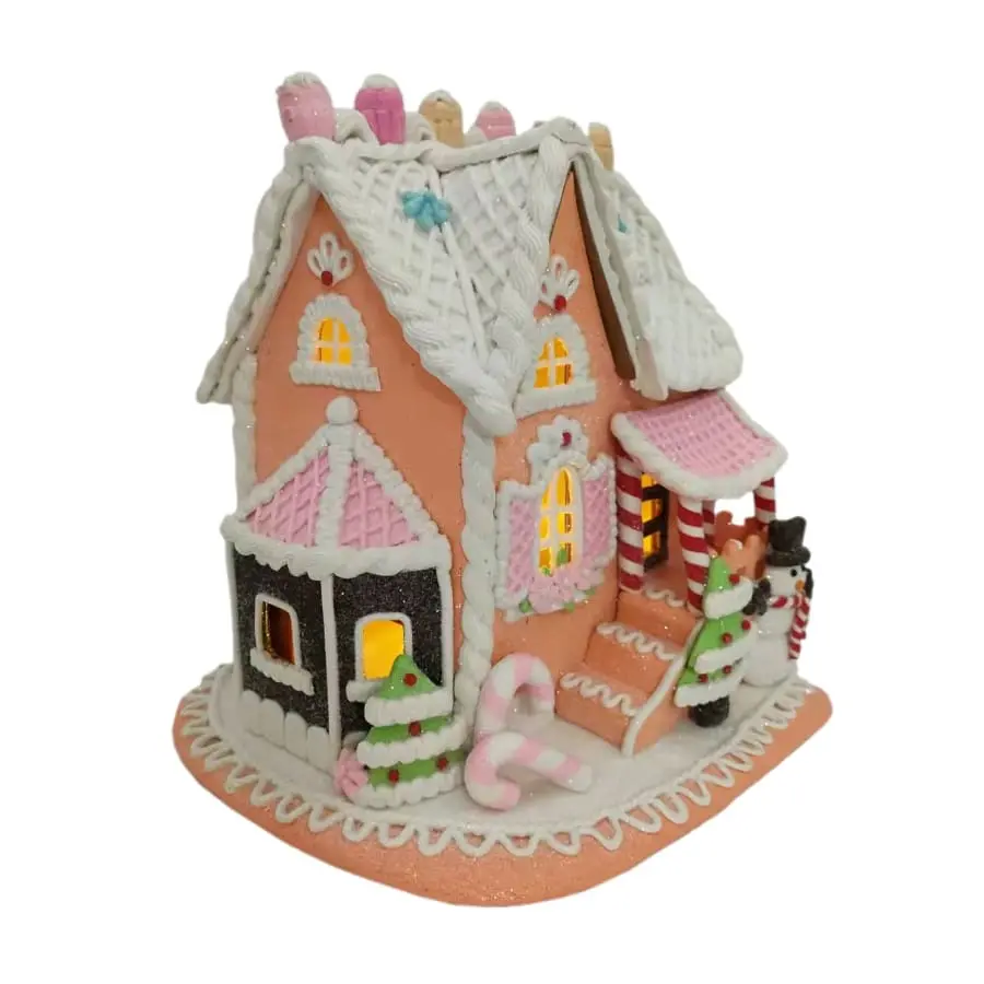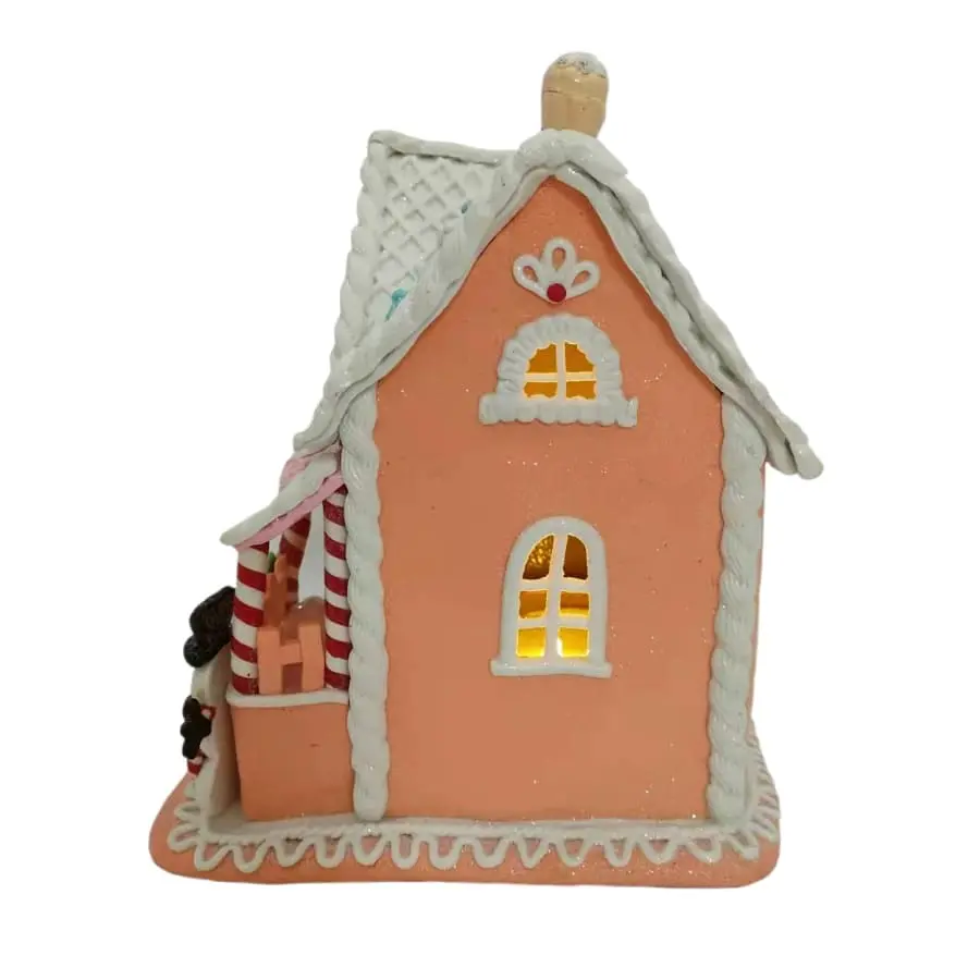The beautiful and decorative led-lit gingerbread house is well-suited as a table decoration for a Christmas home. Skillfully made decorations guarantee attention at the Christmas table! It is also suitable for decorating its colors in other seasons, and as a table decoration for children’s parties, for example. The light from the switch on the bottom lights up in the windows of the gingerbread house.
