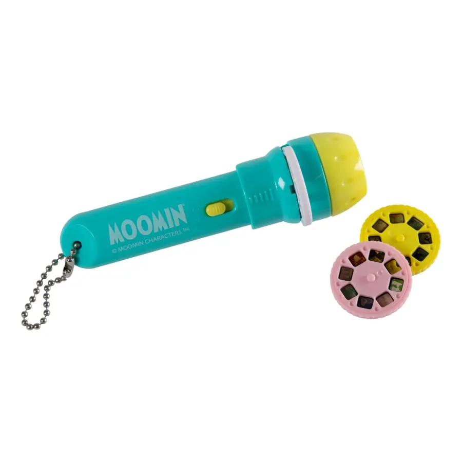 En ficklampa som reflekterar olika bilder med mumintema. Kan användas både som ficklampa och som projektor för att projicera bilder med mumintema. Varje tavla berättar sin egen berättelse med Mumintema med hjälp av bilder.