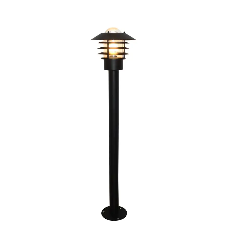 Pollarlampa för belysning av gård och gångvägar. Lampans kropp är gjord av målat matt stål och kupolen är av klart glas.