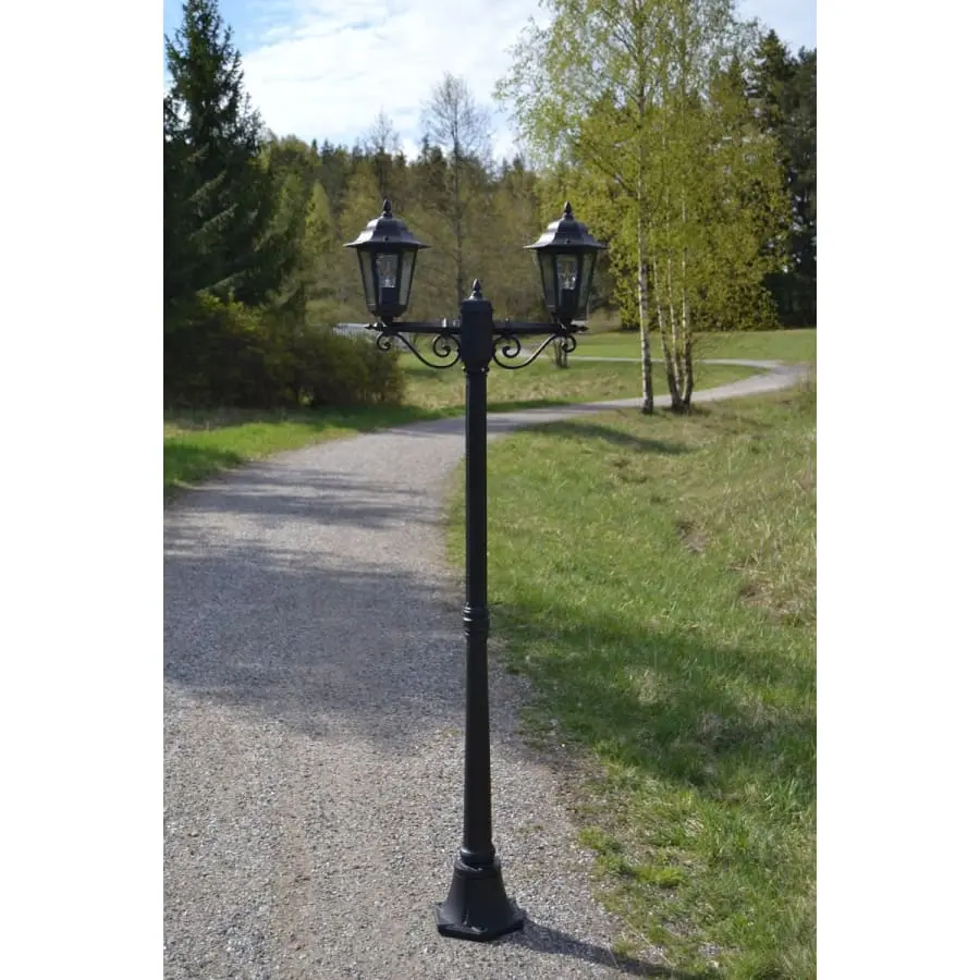 En klassisk, högkvalitativ 2-delad stolplampa för att lysa upp trädgården och gångvägarna. Lampans kropp är gjuten lättmetall, som avslutas med tre lager färg.