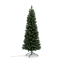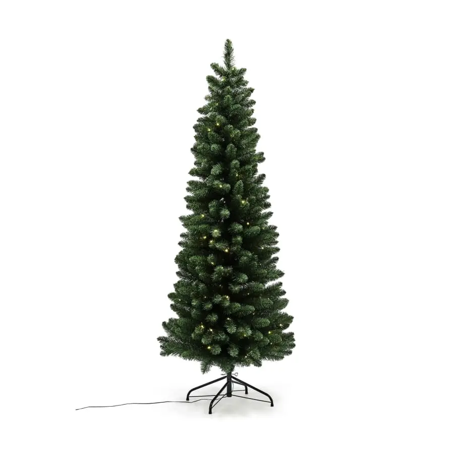NOR-sarjan kaunis ja luonnollisen näköinen kapea joulukuusi, jossa on LED-valot asennettuna. Kapea keinotekoinen joulukuusi sopii paikkoihin, joissa tilaa on vain vähän tai joulukuusi halutaan asettaa esimerkiksi nurkkaan. Nauti kauniista joulukuusesta koko joulunajan. Kuusi toimitetaan osissa ja metallijalalla. Helppo ja nopea asentaa ja pakata joulun jälkeen. Käyttö vain sisätiloissa. Allergiaystävällinen, eikä pudota neulasia, kuten aito puu. Tämä joulukuusi kestää vuodesta toiseen.