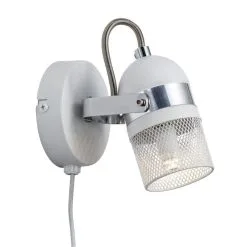 Modern vägglampa LJUS metall. Strålkastaren vrids 150°, så det är lätt att rikta ljuset till önskad plats. Lampans höjd är 12 cm, djup 14 cm och bredd 9 cm. Skärmens diameter är 5,8 cm.