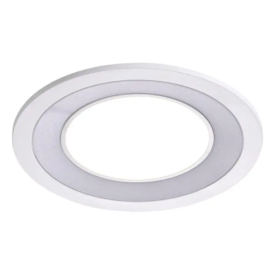 The Clyde 15 downlight has a three-stage Moodmaker control that works with a normal light switch. With Moodmaker control, you can light only the outer or inner light ring, or both. The downlight can be installed in dry interiors. Diameter 14.5 cm and height 3.5 cm. Up to 15 Clyde 15 downlights can be chained in a row.
