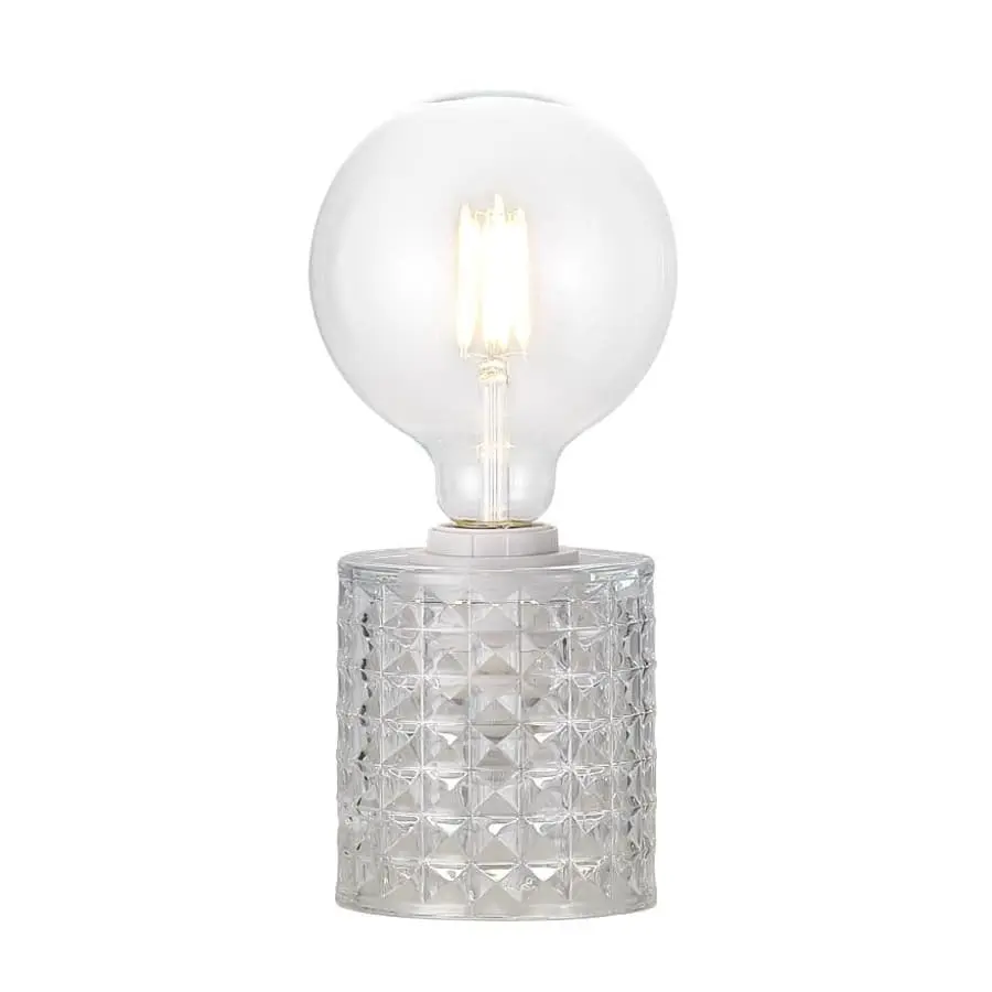 An elegant table lamp with a glass frame, which can be finished with a decorative or more simple light source.