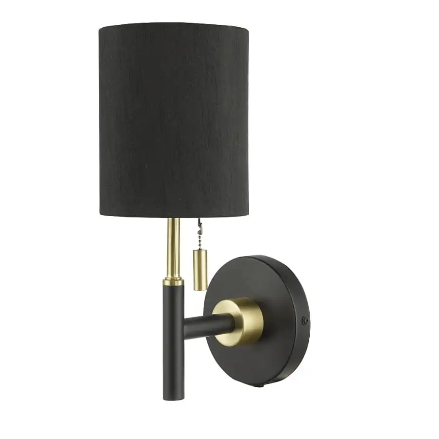 Height 32 cm, Width 13 cm, Depth 18 cm, Material metal/silk shade, Color black/brushed brass, E27 lamp base Max 25W, 170 cm black cord.