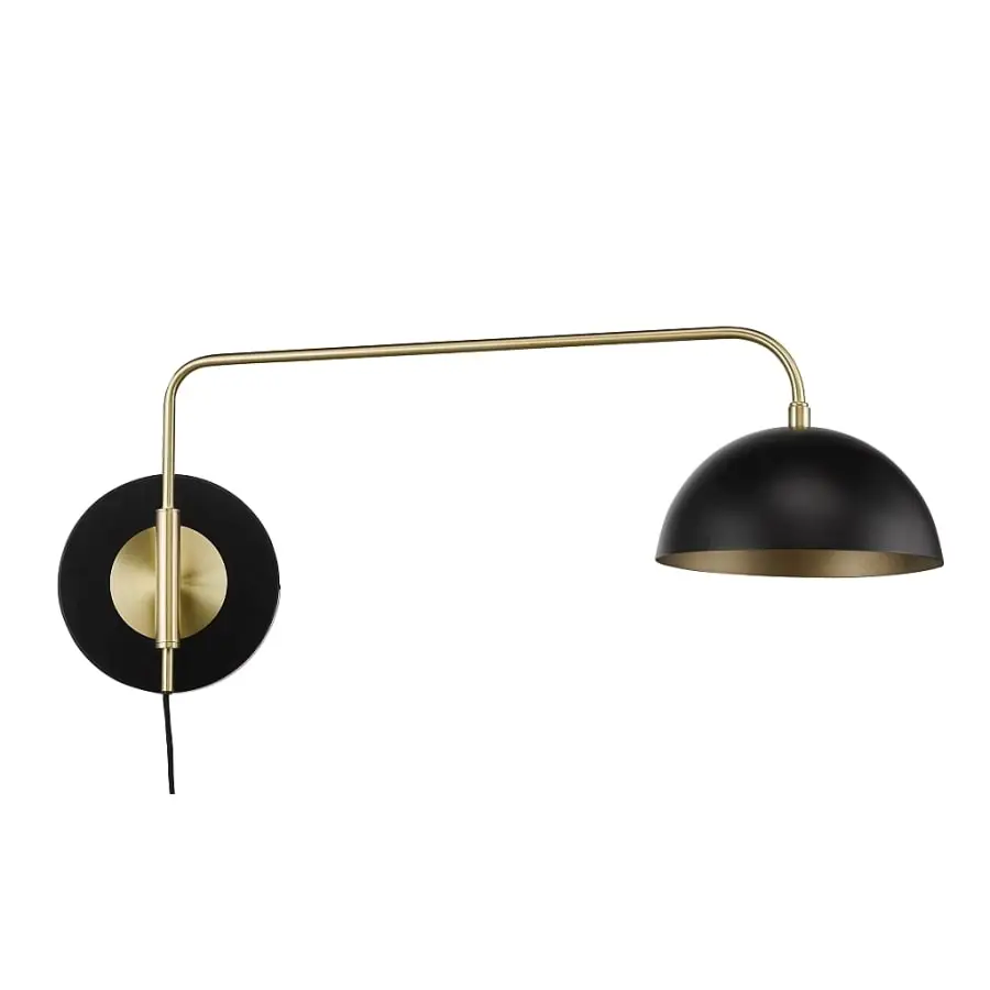 Height 25 cm, Width 64 cm, Depth 20 cm, Material metal, Color black/brushed brass, 2xE14 lamp base Max 15W, 170 cm black fabric cord.
