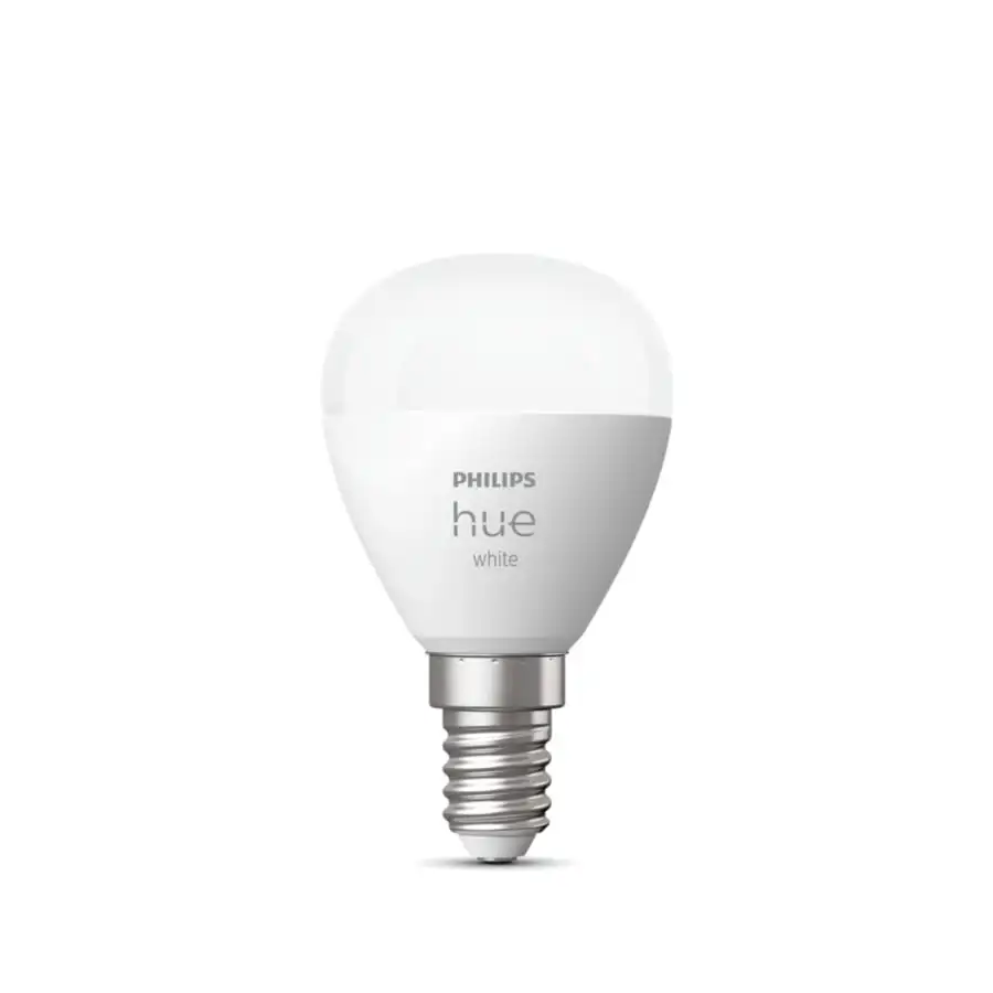 Combine the smallest lamps and lamps, for example wall and table lamps, with the Philips Hue White P45 E14 crown lamp. This small lamp gives off a dimmable warm white light, and you can control the lighting of one room via Bluetooth connection. When you add the Hue Bridge, you get access to all the features.