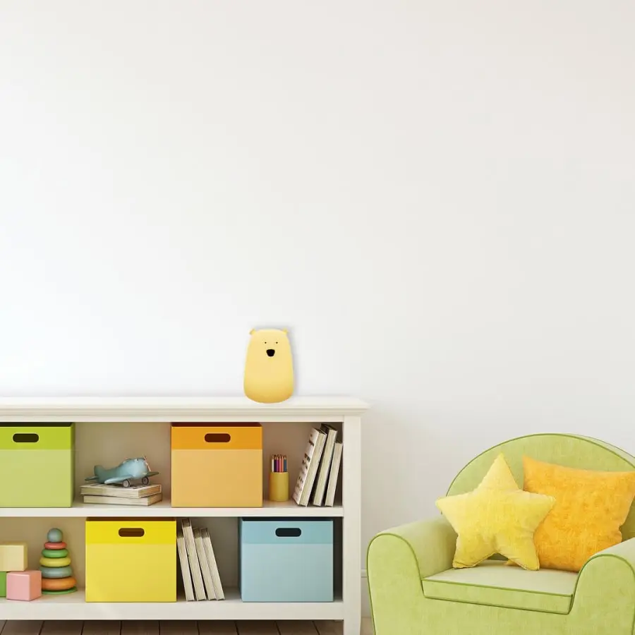 A cute little Balo bear watches over your little one’s sleep! The night light has an integrated LED light source. The lamp has a long life because it contains a battery and is rechargeable. Charging takes place with a USB stick. The night light also has a tap switch with which you can change the color! Press the bear’s head and you can change the color of the light or even turn on the color disco!