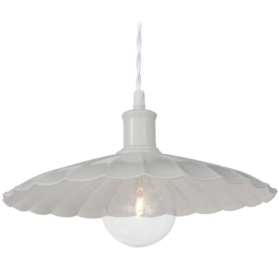 Retroinfluerad antiksilverfärgad hänglampa i metall. Passar i alla rum. Grå tvinnad textilsladd. Diameter 35 cm. Avstånd från tak max 130 cm. Enkel montering med krokupphängning och lampkontakt. E27 / 60W.