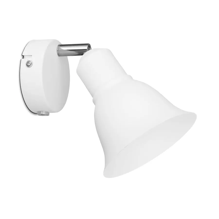 Sandvit vägglampa med ställbar förkromad arm. Lämplig som läslampa vid sängen eller fåtöljen.