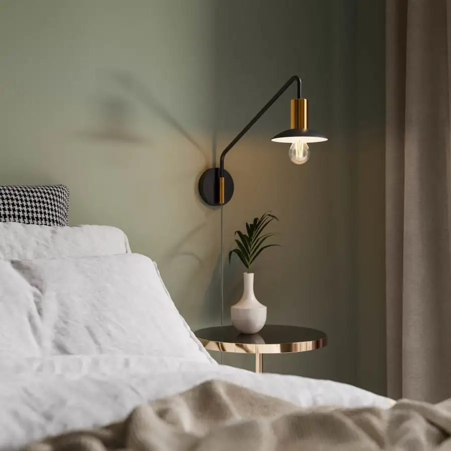 Metal in matte black and matte brass is one of the most stylish and popular combinations right now. Our designers have taken into account that in many homes people want to save space and instead use the walls to incorporate lamps as part of the decor. With the Quinn wall lamp, you get a trend-setting interior detail that both saves space and gives your home or office a detail that stands out on the wall! The Quinn wall lamp is suitable for most rooms, especially if you have an interior design based on the graphic style.