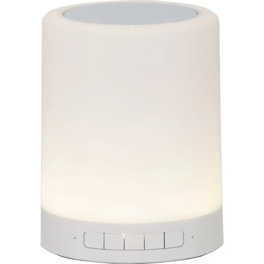 En behändig liten bluetooth-högtalare som är lätt att ta med sig till till exempel trädgården eller stranden. Samtidigt är högtalaren också ett LED-ljus, från vilket du kan välja vitt ljus med olika ljusstyrka, eller ett färgläge. Tillgängliga färger är röd, grön, blå, lime, ljusblå, mjuka växlande färger och rytmisk blinkning. När ljuset är i blinkande läge och musik spelas, kommer färgerna att ändras enligt musikens rytm.