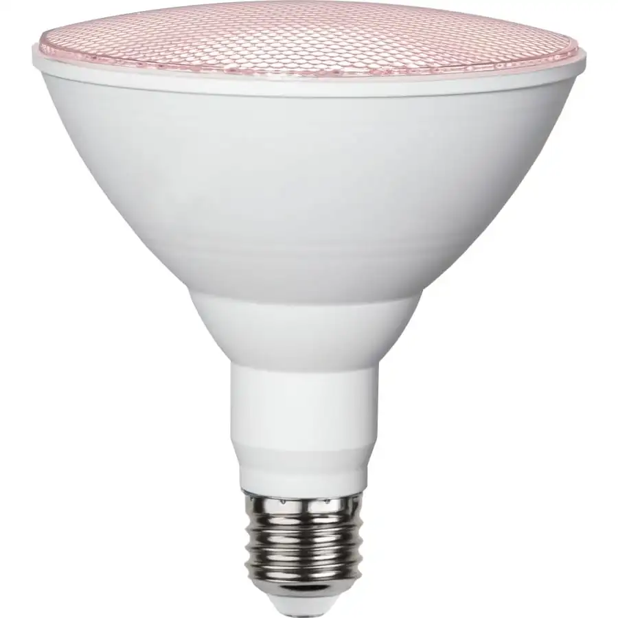 Energieffektiv LED-växtlampa med E27-sockel. Lampan producerar ljus med blå och röda våglängder, vilket påskyndar växternas tillväxt och ökar blomningen.