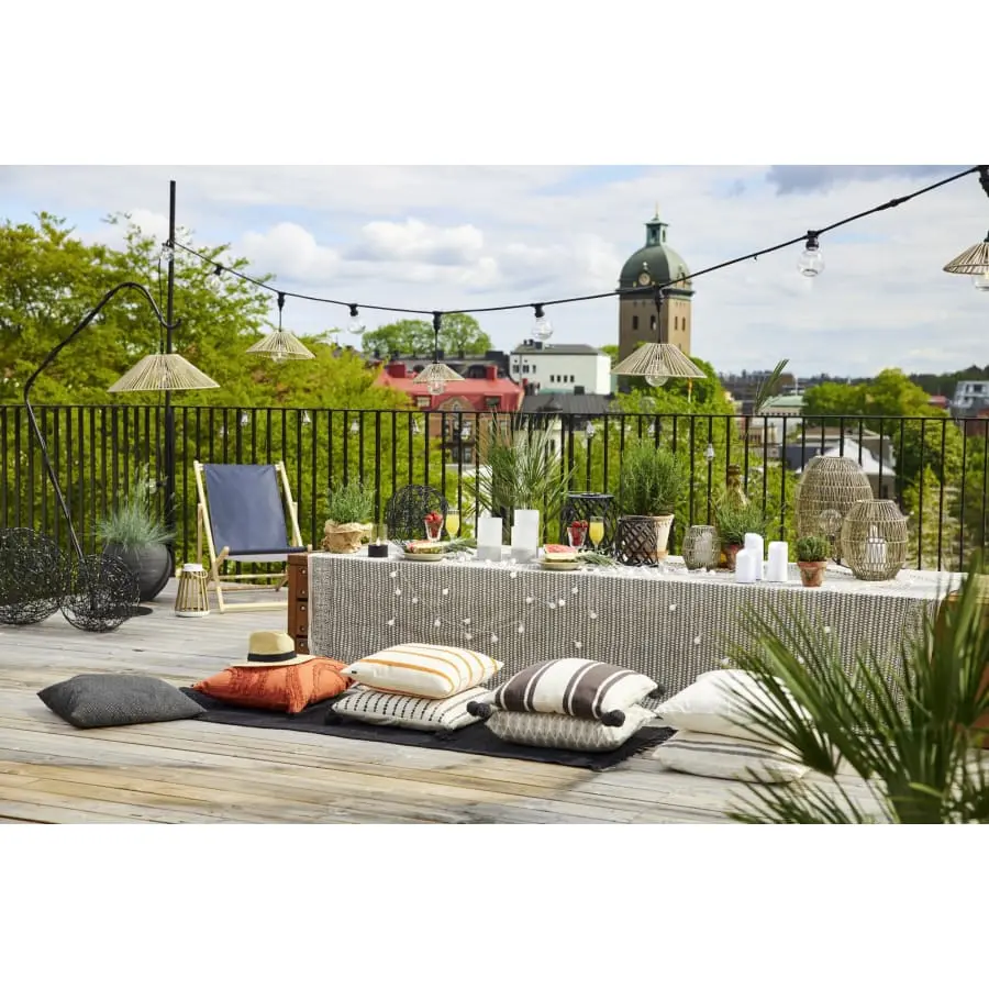Connect to an E27 socket outdoor lamp cord (e.g. SR-418-30, SR-481-31, SR-418-35 or SR-418-36) and a light source and hang on, for example, a terrace or balcony. The shade can also be connected to Star Trading’s Connecta outdoor light set SR-418-10 or you can put an LED candle inside it to get a beautiful lantern.