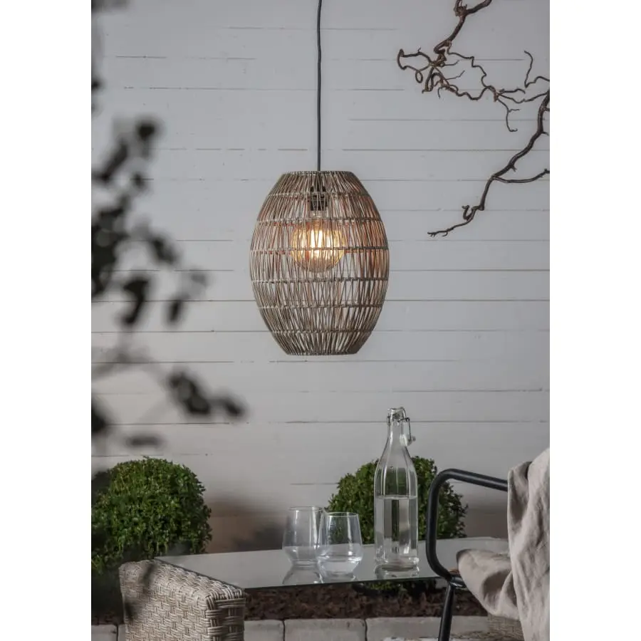 Beige lampshade made of poly rattan for outdoor use. Diameter 30 cm and height 40 cm.