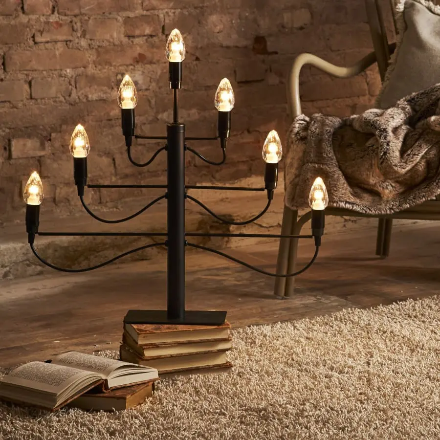 The candlestick has a place for 7 E14 socket lamps. Lamps are not included in the package.