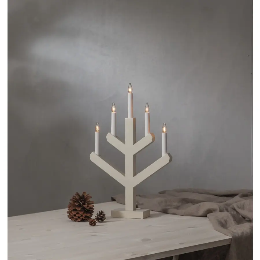 En vacker elektrisk ljusstake i trä som skapar en härlig julstämning hemma. För inomhusbruk.