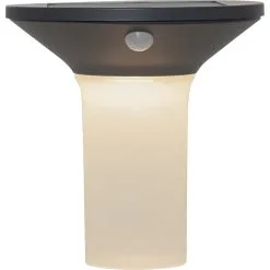 A solar-powered wall lamp with a motion and twilight sensor. The motion sensor turns on a 400-lumen light for 30 seconds when it detects movement, otherwise the light output is 15 lumens in low light. The operating range of the motion sensor is 6-8 meters and 120 degrees. The lamp has a warm white light.