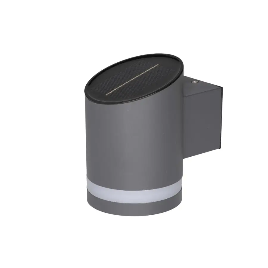 Stylish wall-mounted luminaire with a fixed solar panel. The solar panel has a twilight sensor that turns on the light when it gets dark and the light turns off automatically after 7 hours of use. Solar panel: monocrystalline 0.75 W 5 V 150 mAh. Battery: 3.7 V 1200mAh Li. Enclosure class IP44. Light output max 120 lm. Power: 1 W. Color temperature 4000 K (bright white). Warranty 12 months.